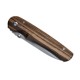 Couteau pliant. Lame en acier inoxydable 420, revêtement titane stone wash. Ouverture et fermeture une main. Cran de sécurité de type Liner lock. Manche en frène exotique. Clip de ceinture.
